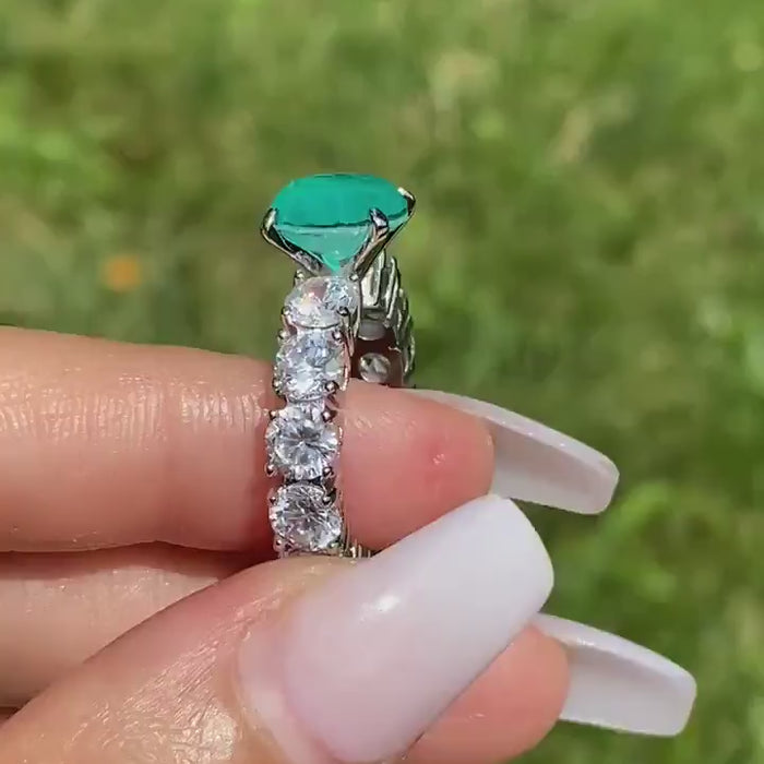MAJESTIC! NATURAL GLOWING NEON GREEN COLOMBIAN EMERALD 3ct Solitaire Ring, Promise Ring, Engagement Ring, Wedding Ring, Every Day Ring. WITH DIAMONDS ALL OVER THE BAND.